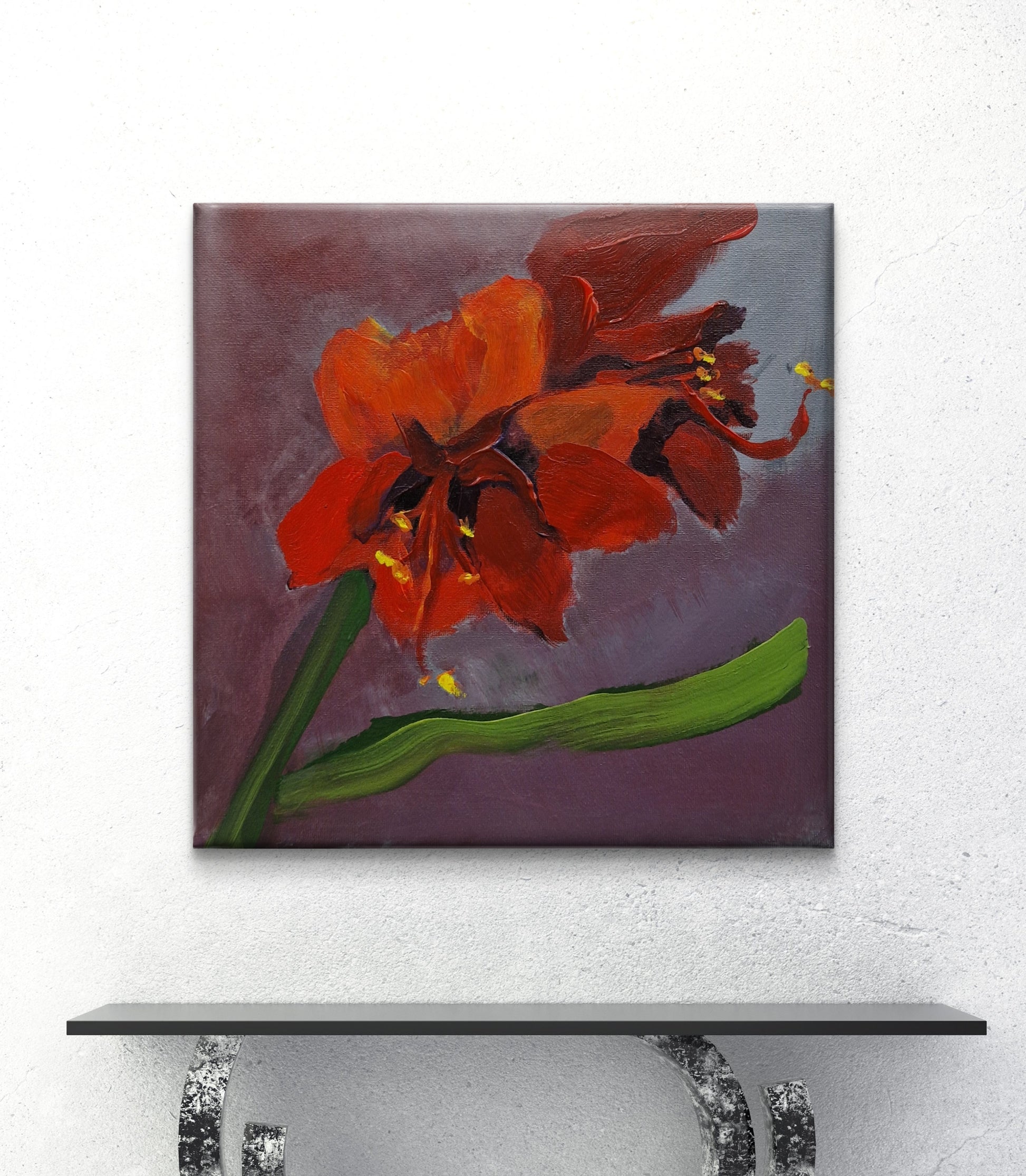 Tapyta akriliniais dažais ant drobės su porėmiu. Dydis: 30×30