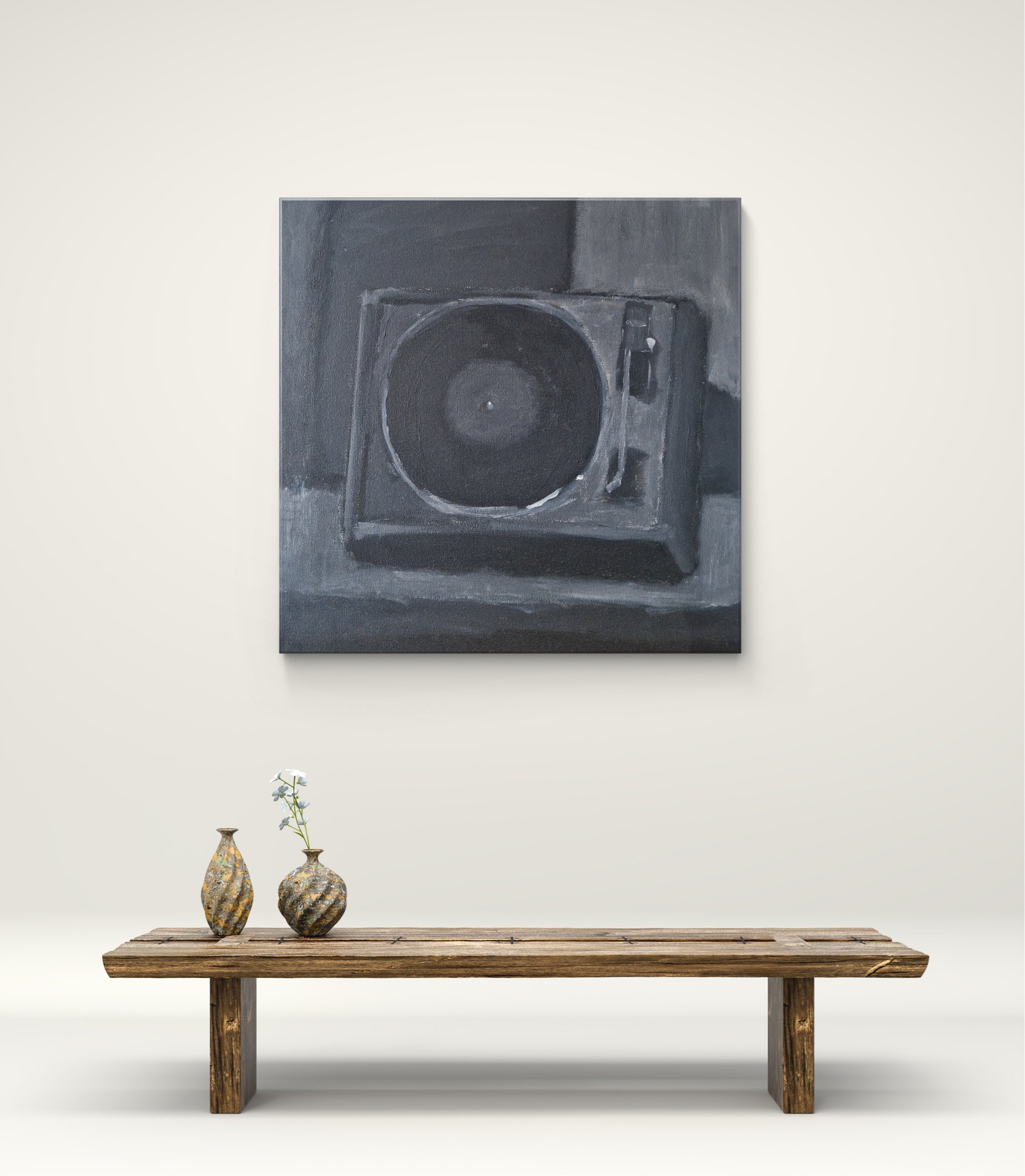 Tapyta akriliniais dažais ant drobės su porėmiu. Dydis: 40×40